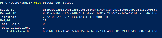 To test the emulator, open a command line interface and enter the command flow blocks get latest. You should see something like this: