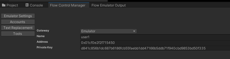 In the Flow Control Window, click the Accounts tab. This shows a few accounts which you can get the address of to test the script.